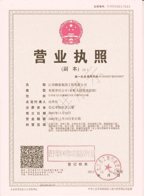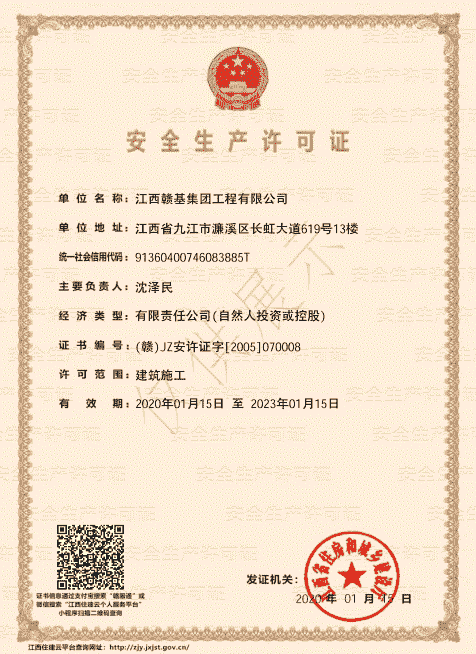 江西贛基集團工程有限公司是國家壹級施工總承包企業,具有公路工程、市政公用工程、房屋建筑工程總承包壹級資質;公路路基、路面專業壹級;水利水電工程、電力工程、城市園林綠化、公路養護工程貳級資質。